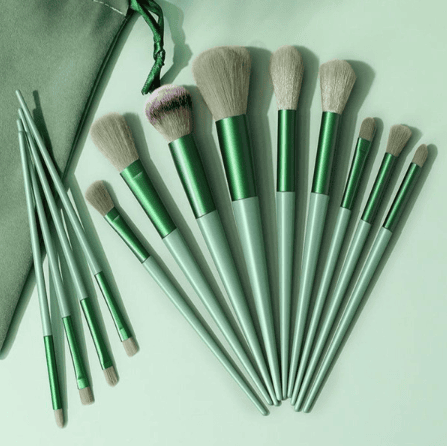 This 13-piece makeup brush kit in green is perfect for achieving a flawless makeup look.