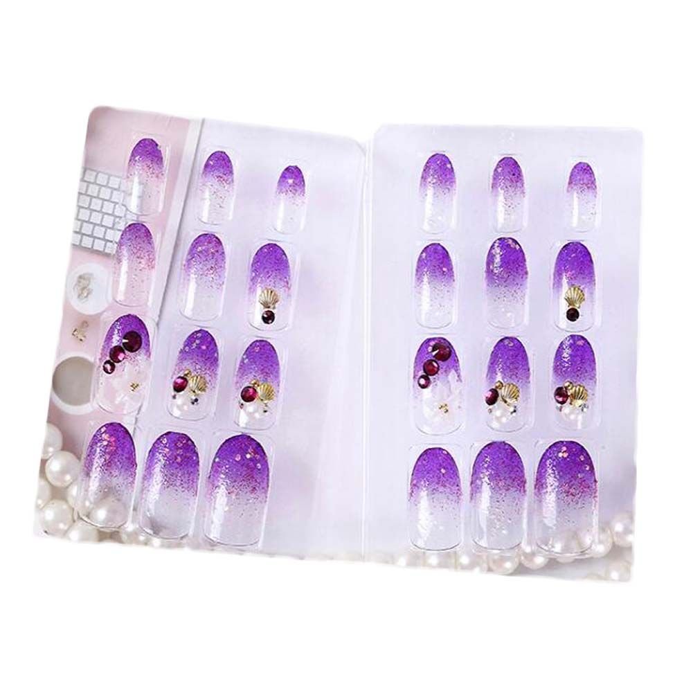 Purple Flower Beads False Fingernails Artificial False Nails Tips Wedding Nail Art Decoration Fake Nails